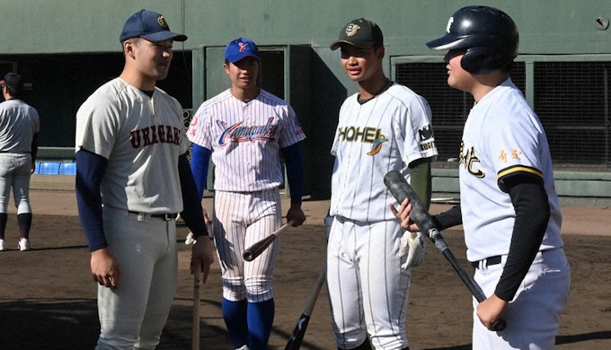 打撃指導では、ロッテからドラフト4位指名された昌平の桜井ユウヤ選手(3年)は「バットの構える位置がバラバラにならないように気をつけて」と助言。巨人に6位で指名された浦和学院の藤井健翔選手(3年)は「ボールをよく見て、打てると思ったら迷わずに思い切り振って」などと呼びかけていた。